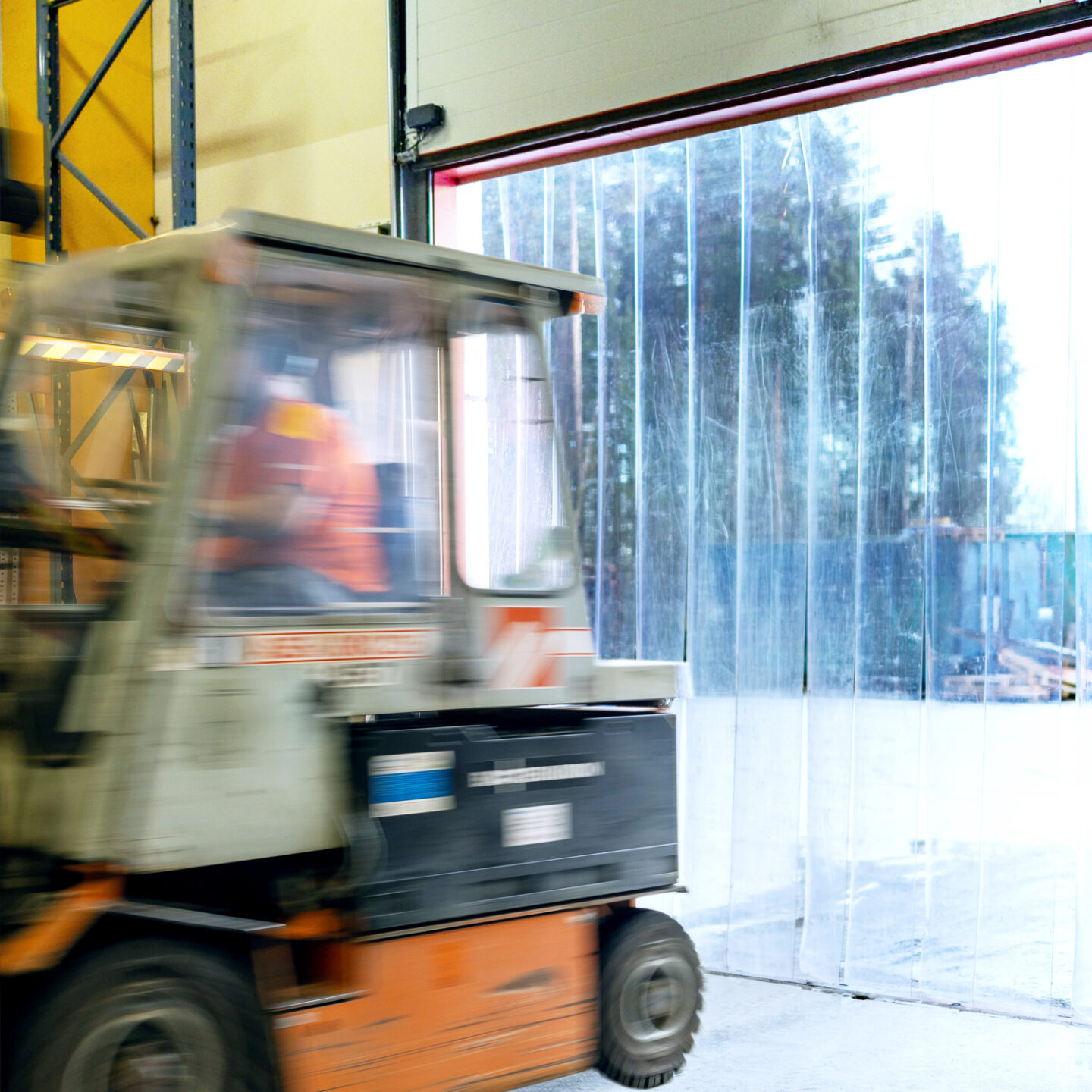 FUMEX ridåplast monteras i den bredd kunden önskar på en kraftig upphängningsprofil och är ett kostnadseffektivt alternativ till exempelvis vanliga portar som kräver dyra installationer, underhåll och reparationer.