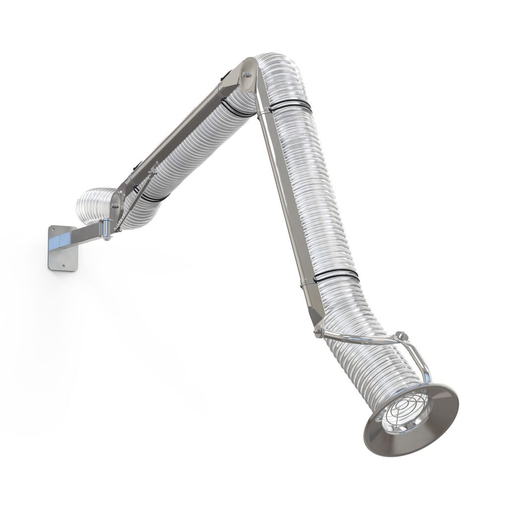 Teleskopiskt punktutsug för trånga arbetsplatser.